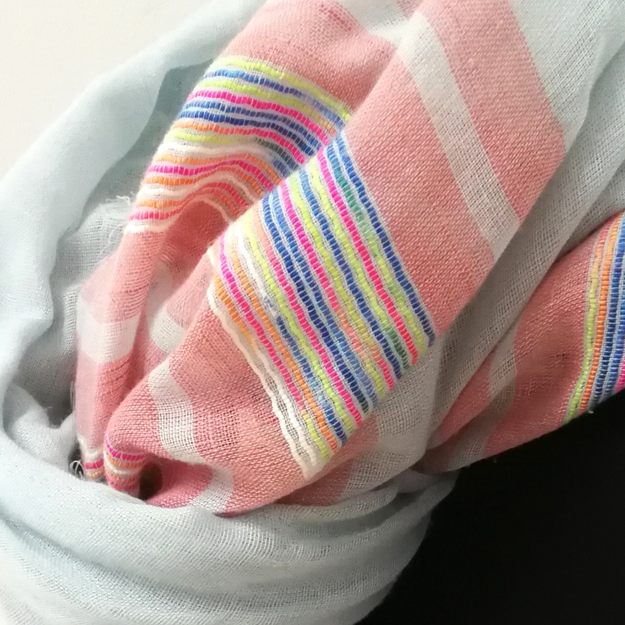 Tørklædet er på samme tid florlet at bære om halsen eller over skulderne, samtidig med at det er blødt mod kroppen. Brug det om sommeren til at beskytte mod solen og om vinteren til at varme.