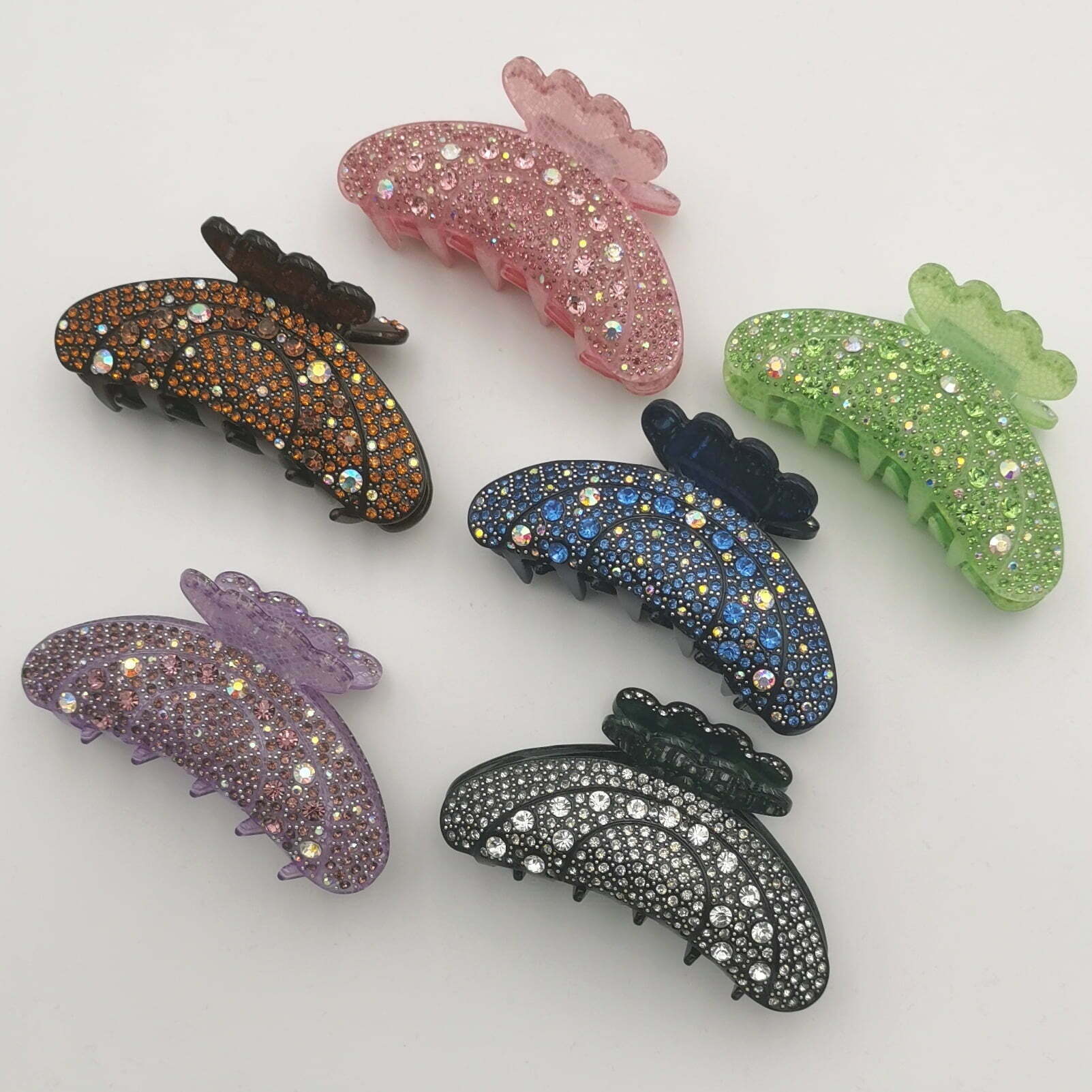 Fantastisk flot hårklemme der funkler med et meget stort antal påsatte rhinsten i forskellige størrelser. Kan enten bruges til at samle alt håret i nakken eller til at samlet det øverste lag hår. Fåes i 6 flotte farver.